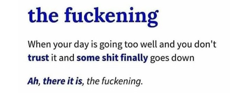 stacystryke Uncategorized October 20, 2018December 18, 2018 1 Minute theshitpostcalligrapher: sudden-biscuit-attack: biggest-gaudiest-patronuses: what an incredibly valuable addition to my vocabulary @theshitpostcalligrapher that me Source: hilarioushumorfromouterspace Share this: Click to share on X (Opens in new window) X Click to share on Facebook (Opens in new window) Facebook Like Loading... Related Published by stacystryke View all posts by stacystryke Published October 20, 2018December 18, 2018